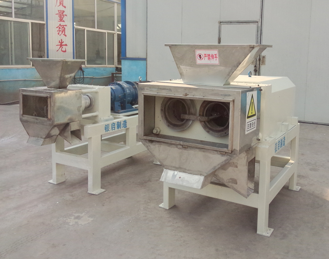 對齒造粒機(jī)是有兩個非標(biāo)空心齒輪(齒底鉆孔,孔徑根據(jù)造粒要求而定),相互咬合轉(zhuǎn)動,物料通過齒輪的齒槽,在相互咬合產(chǎn)生的擠壓作用下,從齒底的孔眼中擠出。再有齒輪內(nèi)腔中的切刀把物粒切斷,形成顆粒。